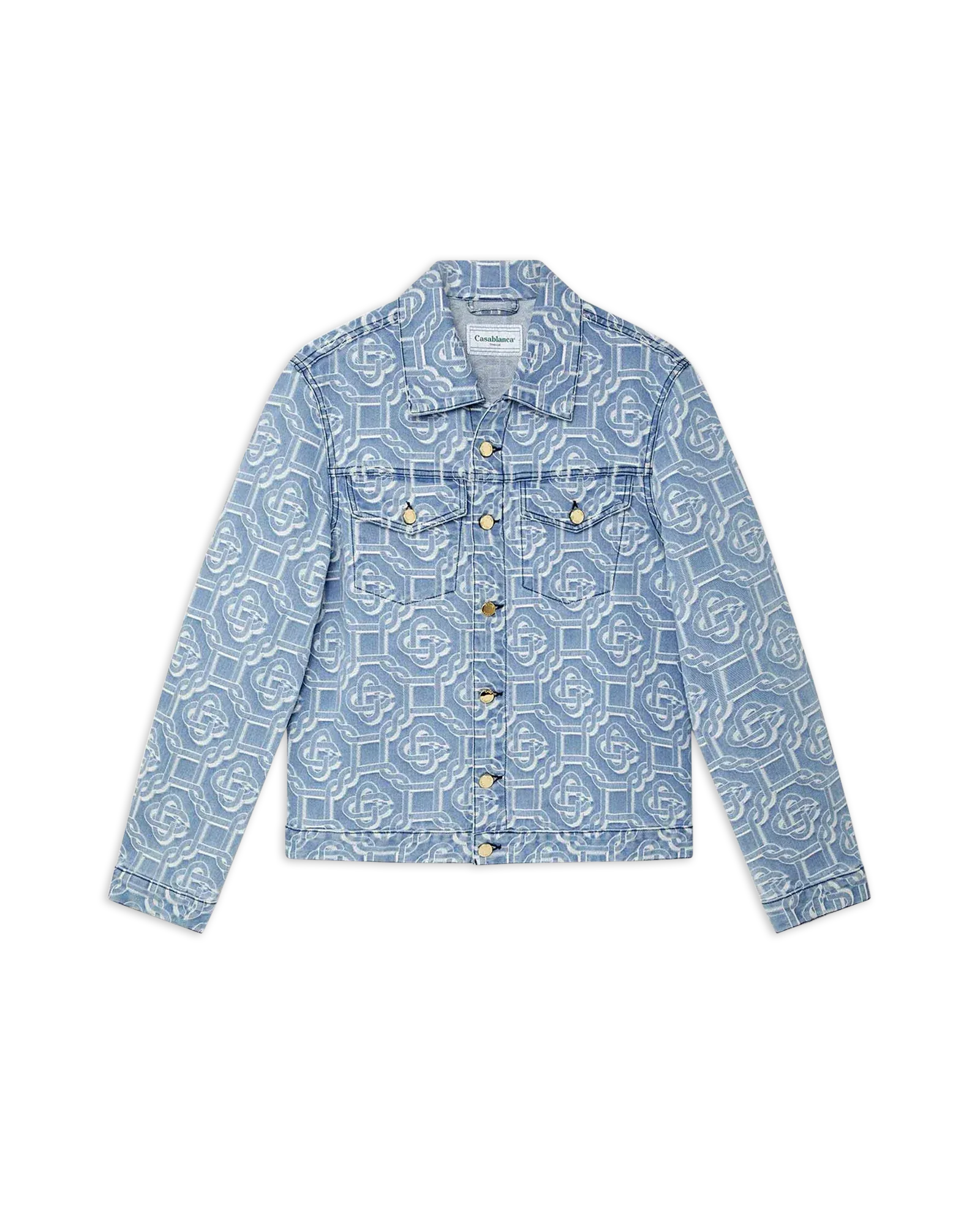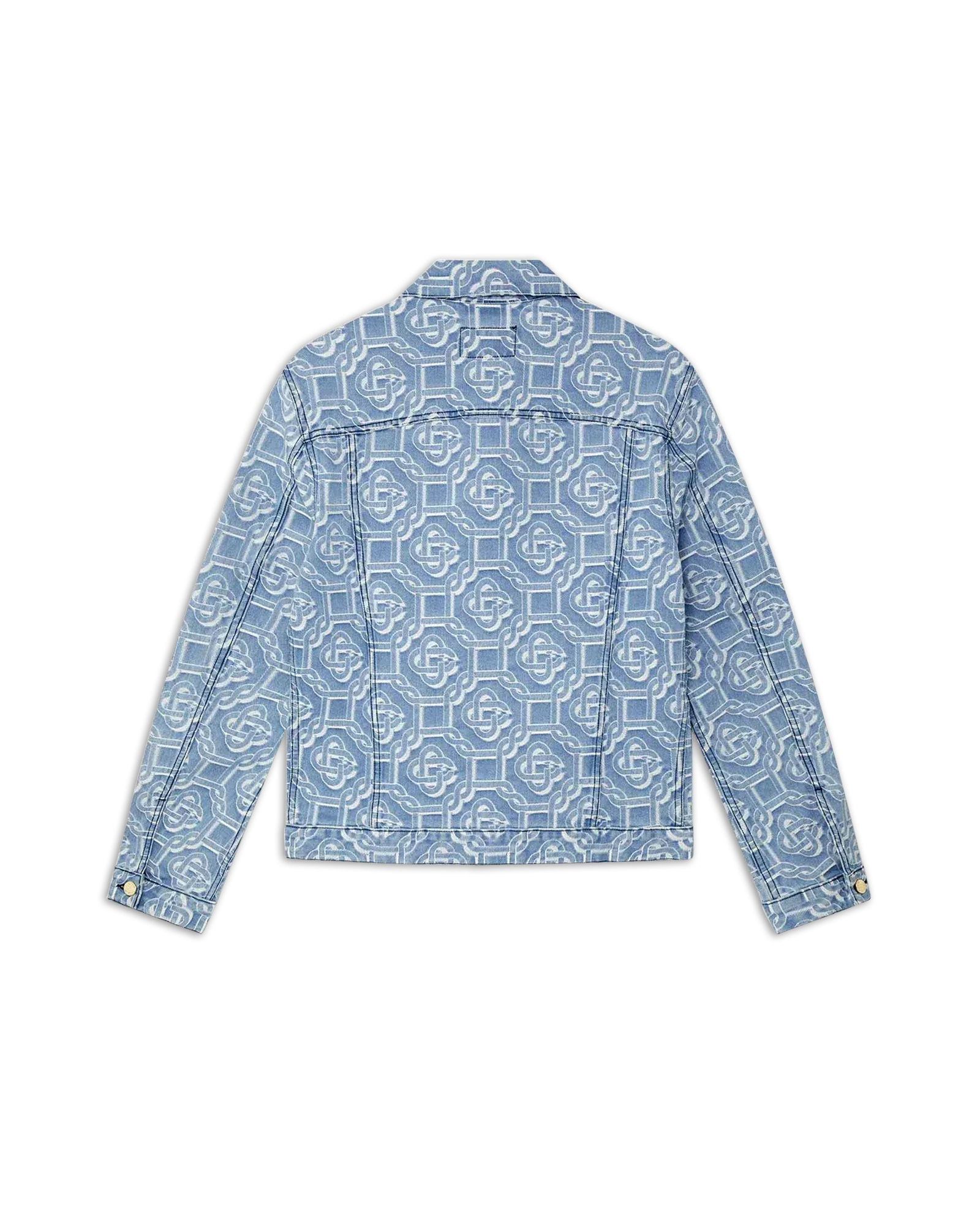 The Denim Bleached Monogram Jacket is a signature house style reinterpreted with modern detailing. Crafted in Portugal from a cotton-elastane blend, this classic-fit silhouette features a digitally printed monogram in a bleached blue wash. Designed with chest flap pockets and finished with gold hardware closures, it pairs perfectly with the coordinating straight-leg jeans for a complete look.