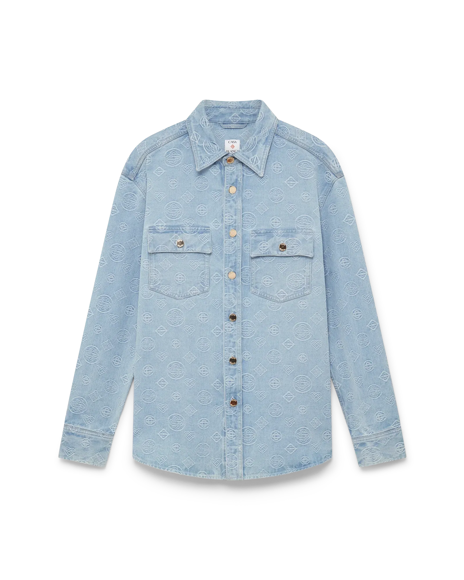 The Denim Monogram Shirt is a refined long-sleeve piece, crafted from premium cotton with the house’s signature Honeydew logo repeat. Unlike traditional monograms, this design blends unique shapes into a cohesive, icon-inspired pattern that elevates classic denim styling. Finished with a sharp point collar, button closure, functional breast pockets, and Casablanca’s signature gold-plated snap buttons, it’s a versatile essential for both casual and elevated looks.