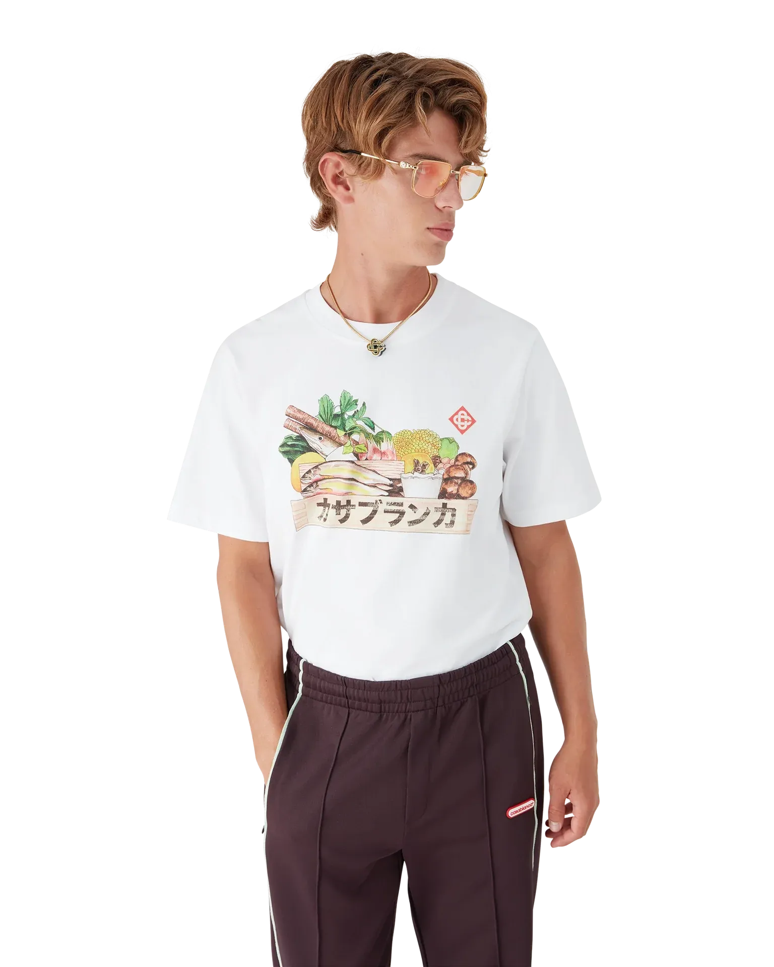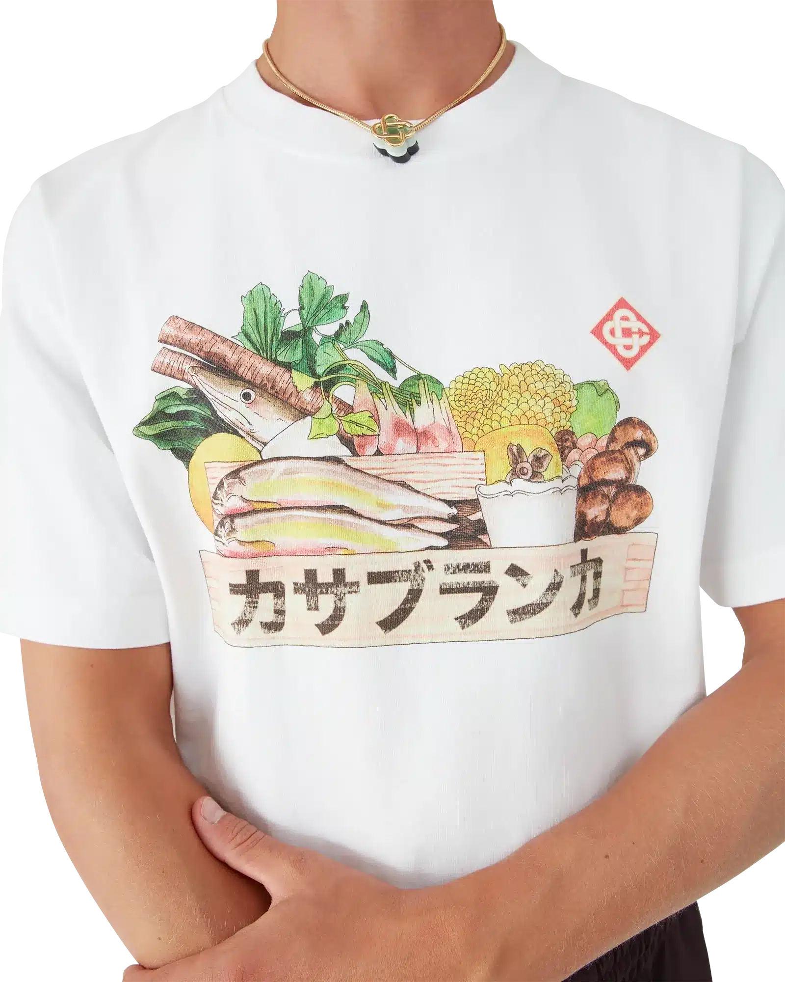 The Ingredients Short Sleeve T-Shirt celebrates the cultural significance of food in Japan, with seasonal printed artwork that highlights the beauty of natural ingredients in their purest form. Crafted from 100% organic cotton, this white t-shirt offers a soft feel and breathable comfort. Designed with a relaxed fit and finished with a timeless crew neck, it blends artistic detail with everyday wearability.
