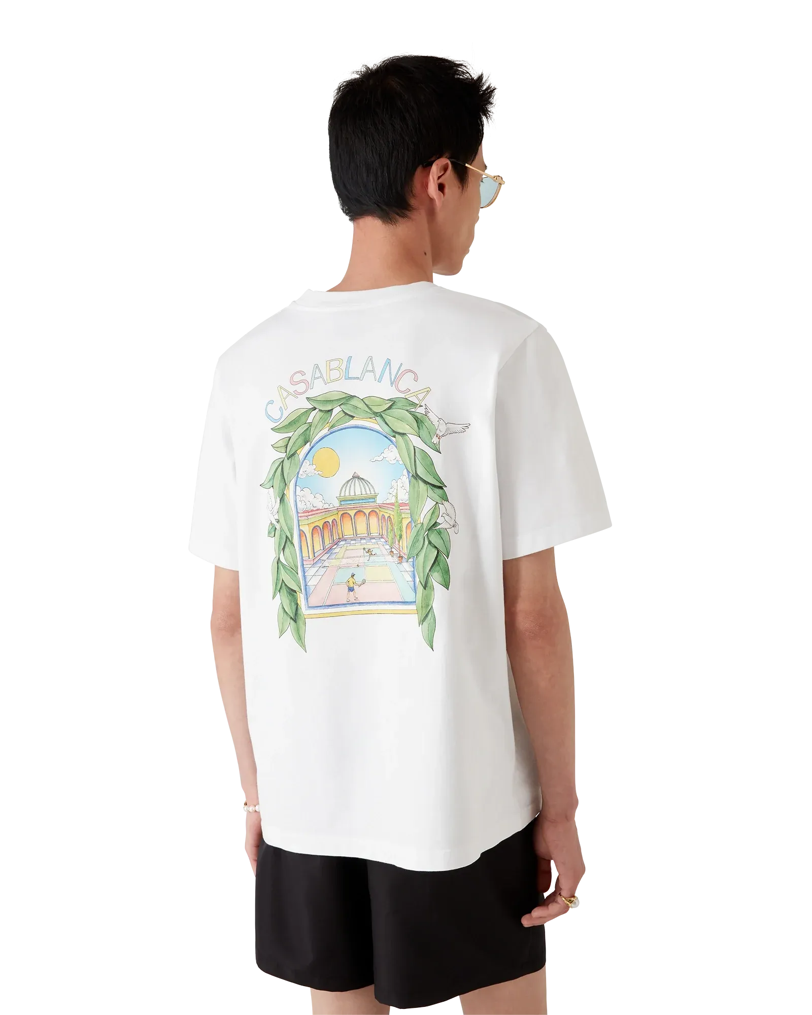 The L’Arche De Tennis Short Sleeve T-Shirt by Casablanca is crafted from 100% organic cotton and features a seasonal screen-printed artwork where the free flow of nature meets structured design through the Arch, a symbol of strength. This Casablanca t-shirt is finished with a relaxed fit and classic crew neck, making it a versatile staple for everyday wear.