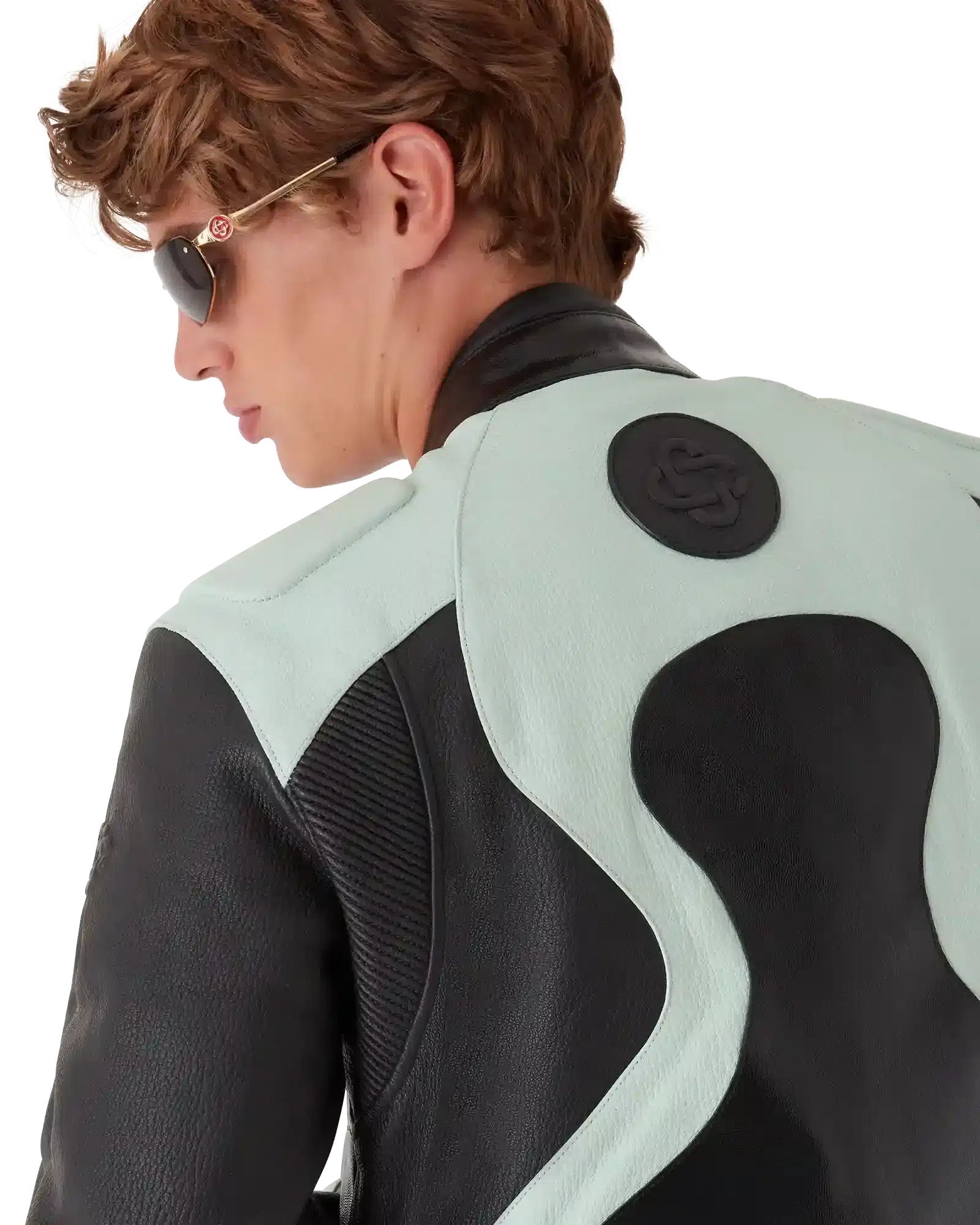 The Leather Biker Jacket is a sleek long-sleeve design crafted from premium leather and detailed with the house’s Casablanca logo across the chest. This contemporary piece features a band collar, branded zip closure, and slanted zip pockets for a functional edge. Padded elbows, shoulders, and back panels provide structure, while strategically placed ventilation holes enhance comfort. Finished with contrasting mint and black panel detailing, this slim-fit jacket blends classic biker aesthetics with modern luxury.