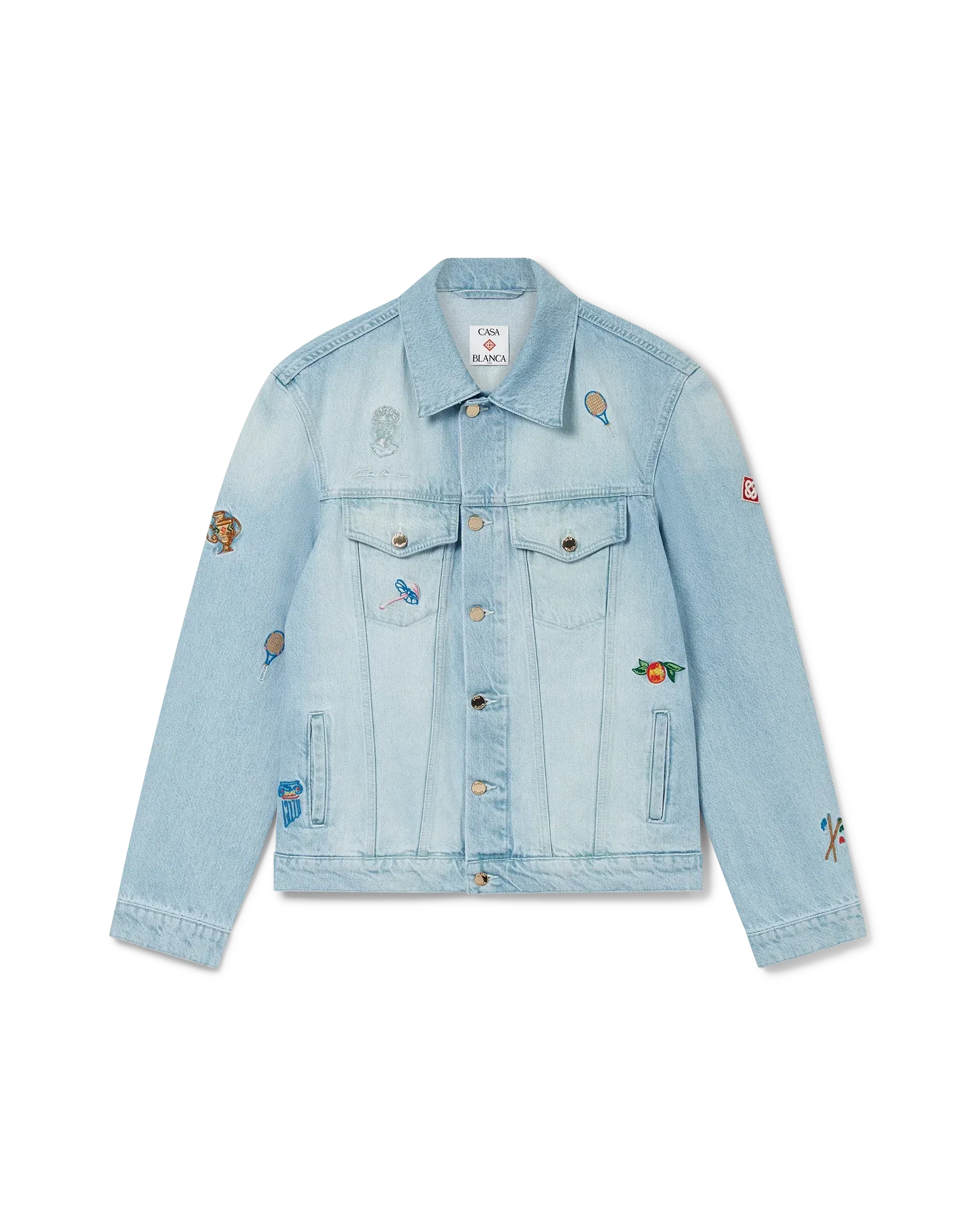 Light Vintage Wash Embroidered Motif Denim Jacket