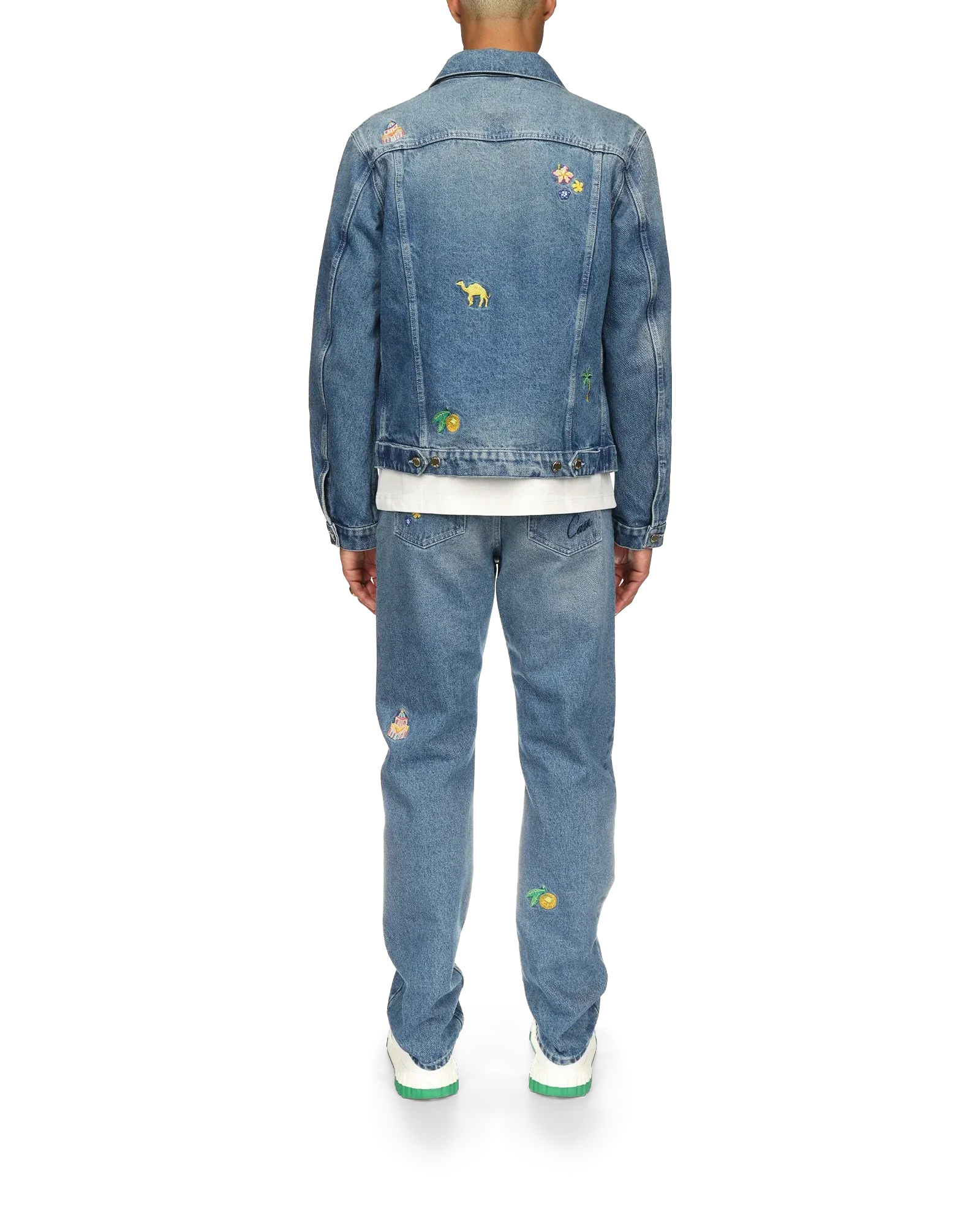 Stone-wash embroidered cotton denim