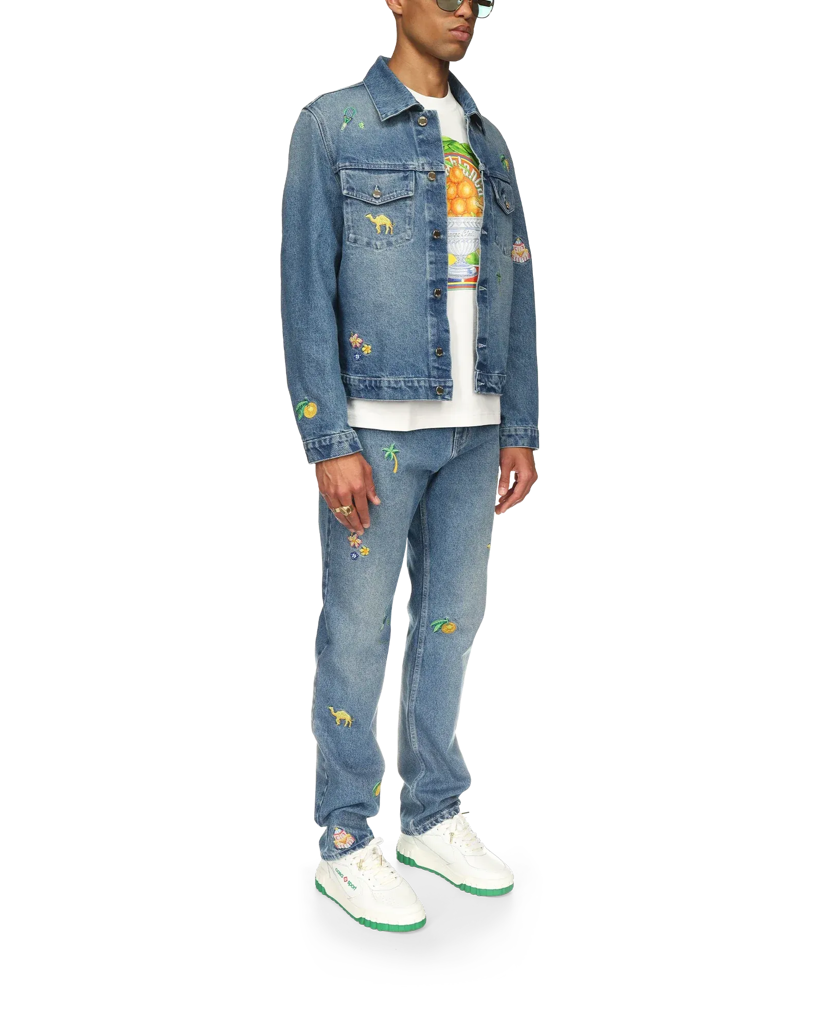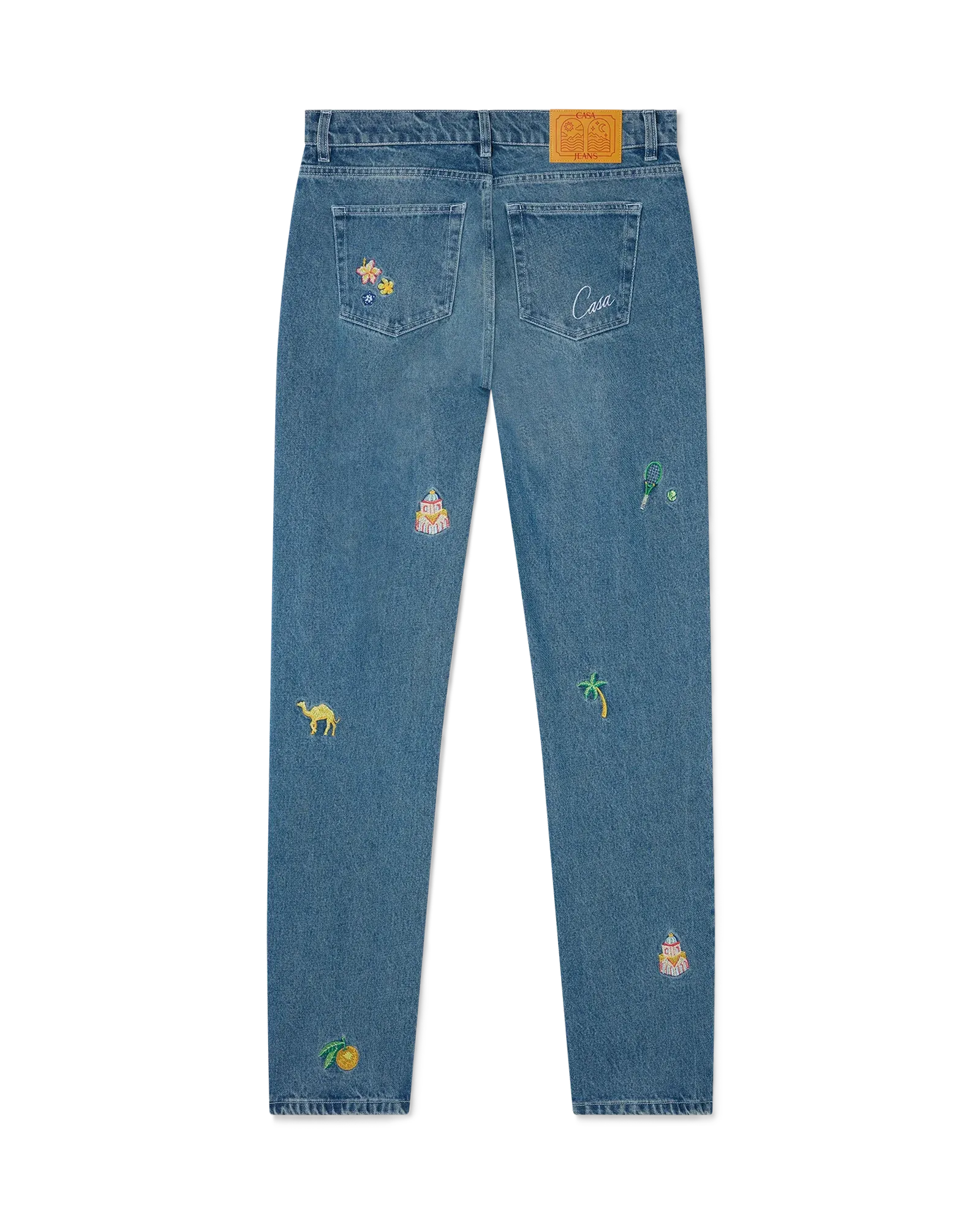 The Motif Denim Jeans offer a refined take on everyday denim with artisanal detailing. Crafted in Portugal from 100% cotton denim in a stone-wash finish, these straight-leg jeans feature embroidered artwork inspired by the house’s signature motifs. Designed for a classic fit, they include back pockets, leather trim, gold-branded hardware, and a zip closure. Pair with the coordinating Motif Denim Jacket for a complete look.
