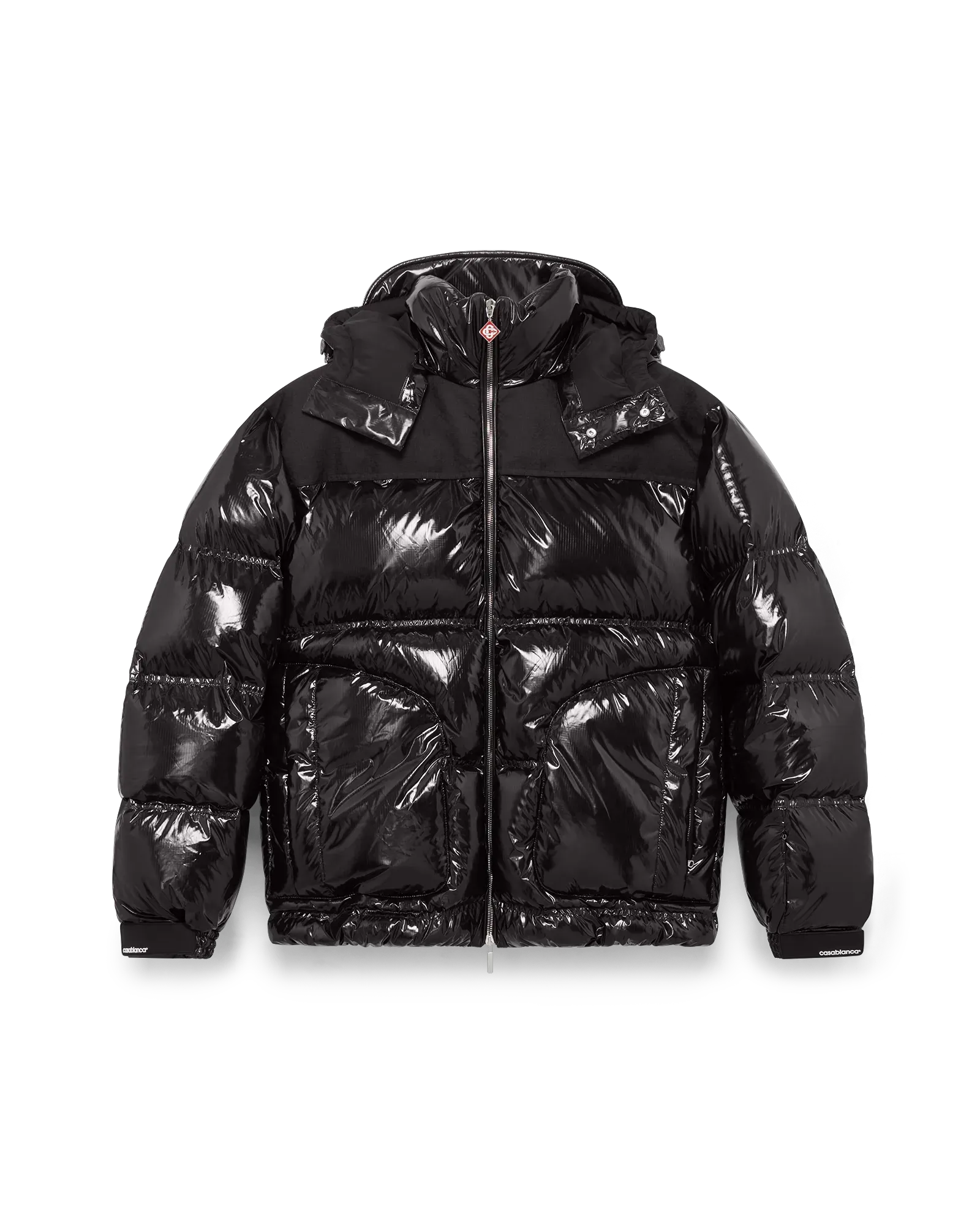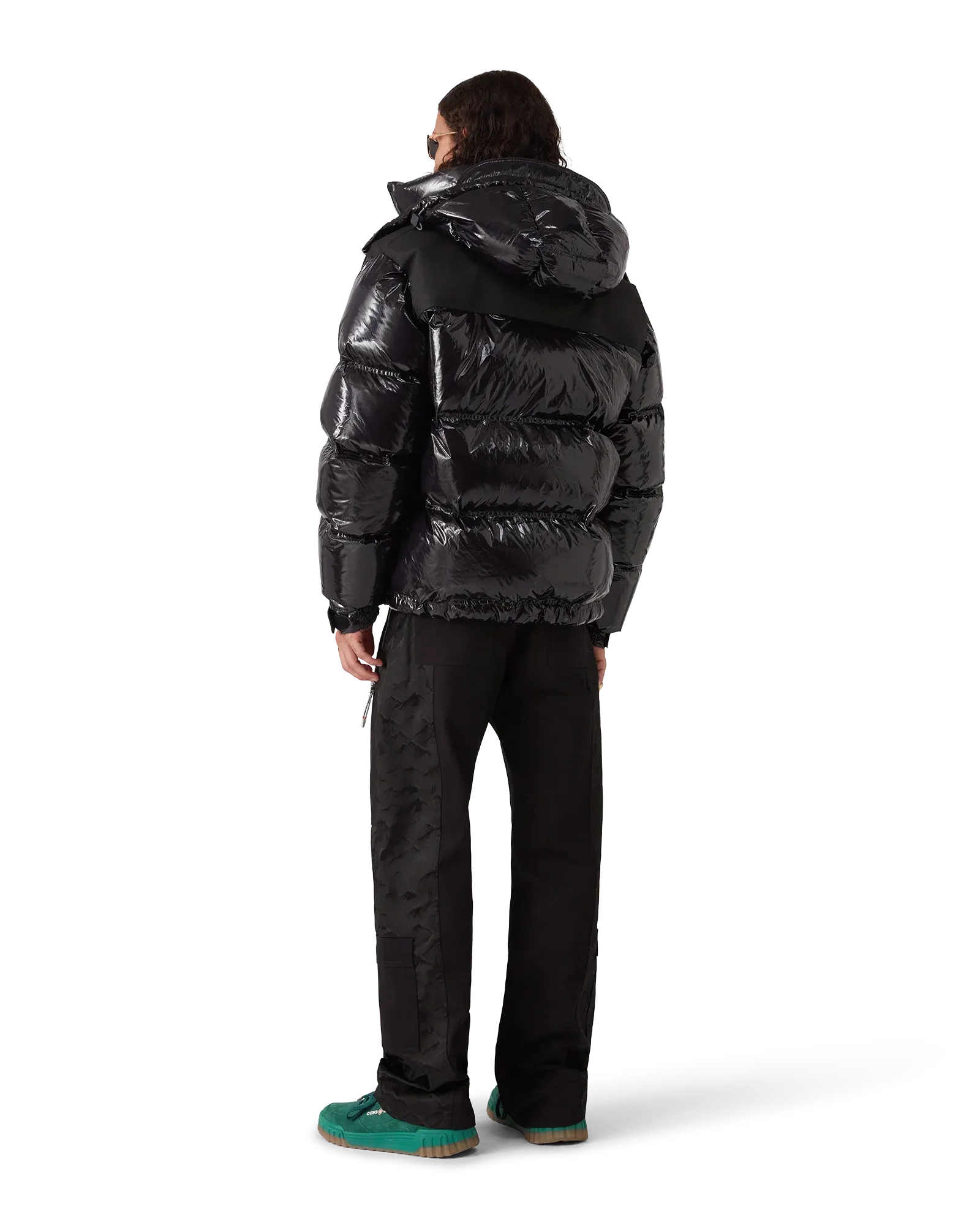The Nylon Puffer Jacket is a modern, boxy outerwear piece designed for both function and style. Crafted from durable ripstop nylon with warm down filling, it features a contrasting monogram jacquard panel across the shoulders for a signature Casablanca touch. The design is completed with a detachable hood featuring interlocking CC logo toggles and drawstring fastenings, a protective stand-up collar, and a zip closure with the house’s diamond logo zipper tab. Functional details include zip-front pockets, branded adjustable cuff straps, and elasticised cuffs and hem for added insulation. A refined take on sportswear outerwear, this jacket combines technical craftsmanship with elevated design.