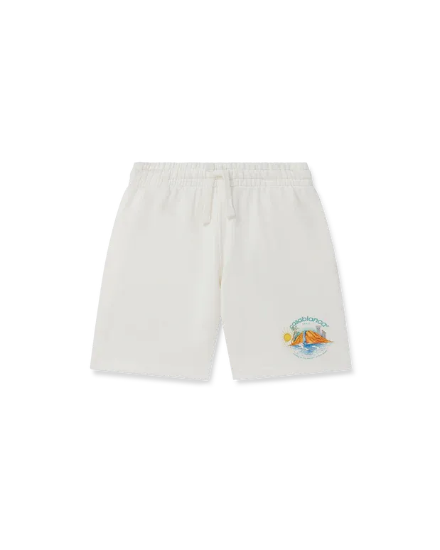 The Oasis sweatshorts are a printed kidswear design crafted from organic cotton fabric, featuring the house’s seasonal artwork with design elements of nature, architecture, and tennis. Completed with an elasticated waistband, gold-tipped drawstring fastening, in-seam side pockets, and a back patch pocket.