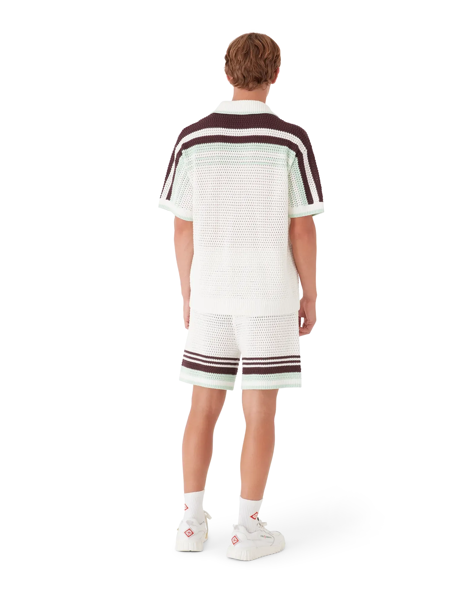 The Tennis Cotton Crochet Shorts are a classic Casablanca design, crafted from crochet cotton fabric in soft natural tones. Featuring the house’s signature diamond logo, these shorts combine artisanal craftsmanship with everyday wearability. The elasticised waistband ensures comfort, while in-seam pockets add practicality. A striped hem detail in white, aubergine, and mint completes the look with a refined edge. Exclusively available at CasablancaParis.com, these shorts are a relaxed essential that pair perfectly with both casual and elevated outfits.